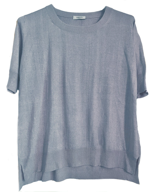 Cashmere Silk crew short sleeve t shirt sweater denim blue